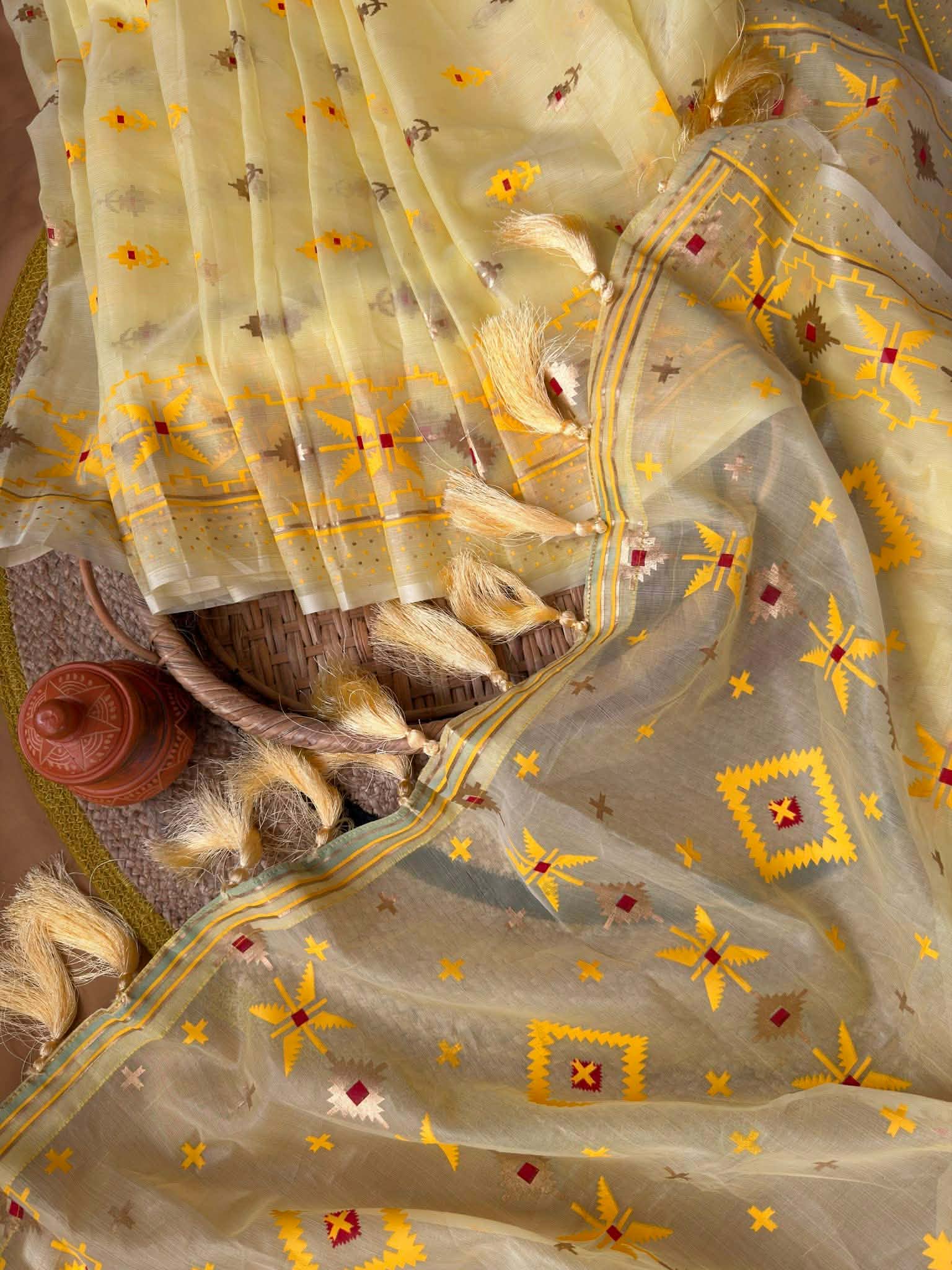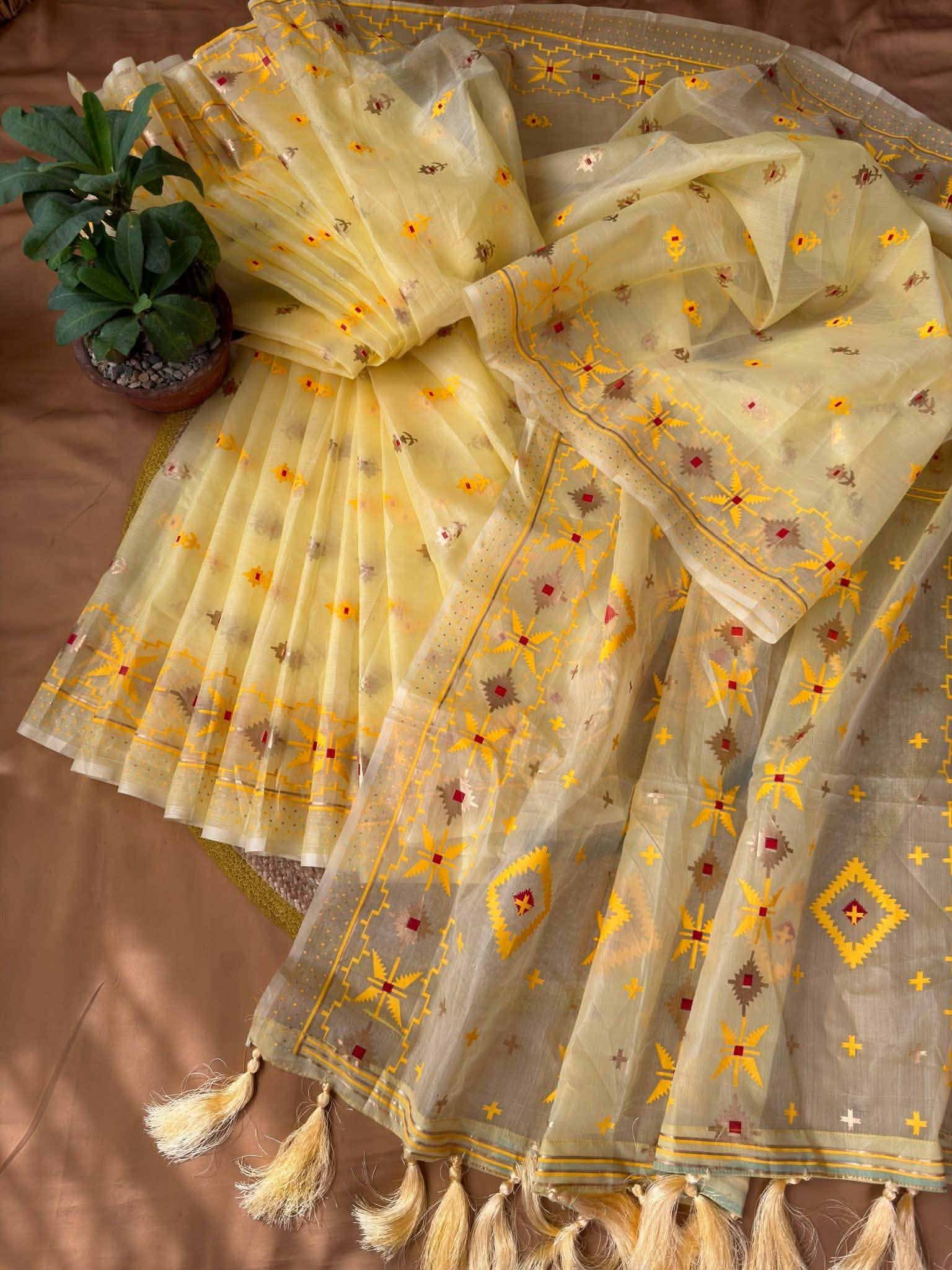 হাফসিল্ক স্কিন প্রিন্ট জামদানী শাড়ি